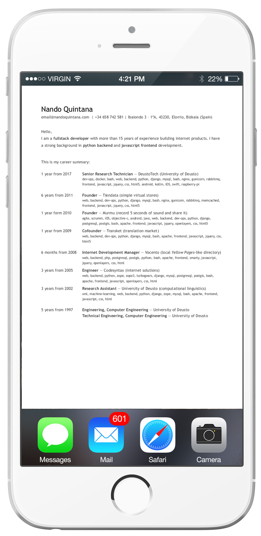 I am a fullstack developer with more than 15 years of experience building internet products. I have a strong background in Python backend and Javascript frontend development.